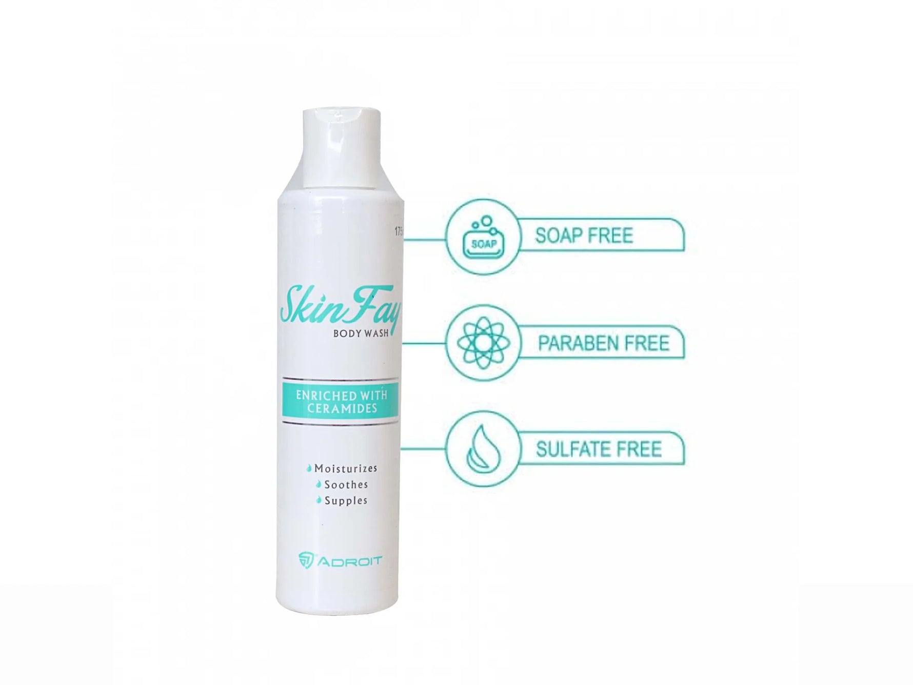 Adroit SkinFay Body Wash is a luxurious and gentle cleanser designed to rejuvenate and nourish your skin. Enriched with natural ingredients and soothing extracts, this body wash effectively removes dirt, impurities, and excess oil while providing deep hydration. Its rich, creamy lather leaves the skin feeling soft, smooth, and refreshed after each use. Suitable for all skin types, Adroit SkinFay Body Wash is perfect for daily use to maintain healthy, radiant skin.