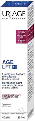 Uriage Age Lift Revitalizing Night Smoothing Cream is a powerful night treatment combining encapsulated Retinol to combat wrinkles and dark spots, Hyaluronic Acid for intense plumping and firming, and Vitamin C & E for antioxidant protection. The micro-encapsulated Retinol ensures gradual release for reduced irritation while maintaining efficacy. Hyaluronic Acid provides multi-depth hydration, plumping fine lines. Vitamin C brightens while Vitamin E protects against oxidative stress. Clinically proven to reduce wrinkles by 37% in 8 weeks.