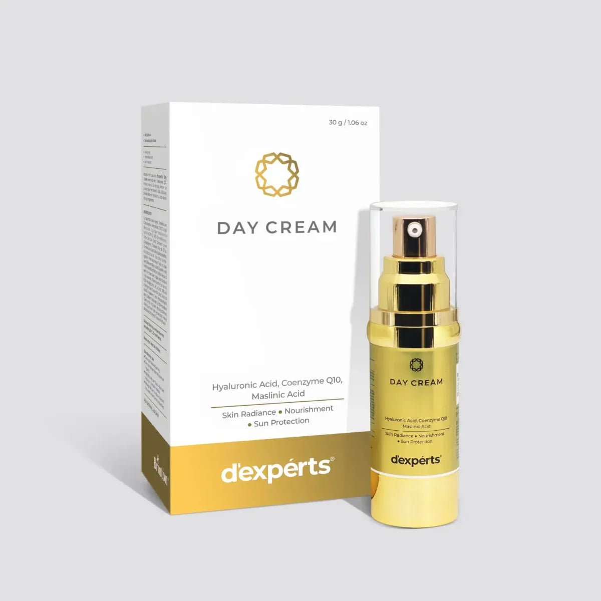 d'experts Day Cream With Hyaluronic Acid, Coenzyme Q10 & Maslinic Acid for Reduces Dark Spots & Pigmentation, Helps in Sun Protection, Skin Radiance & Nourishment for All Skin Types 30g