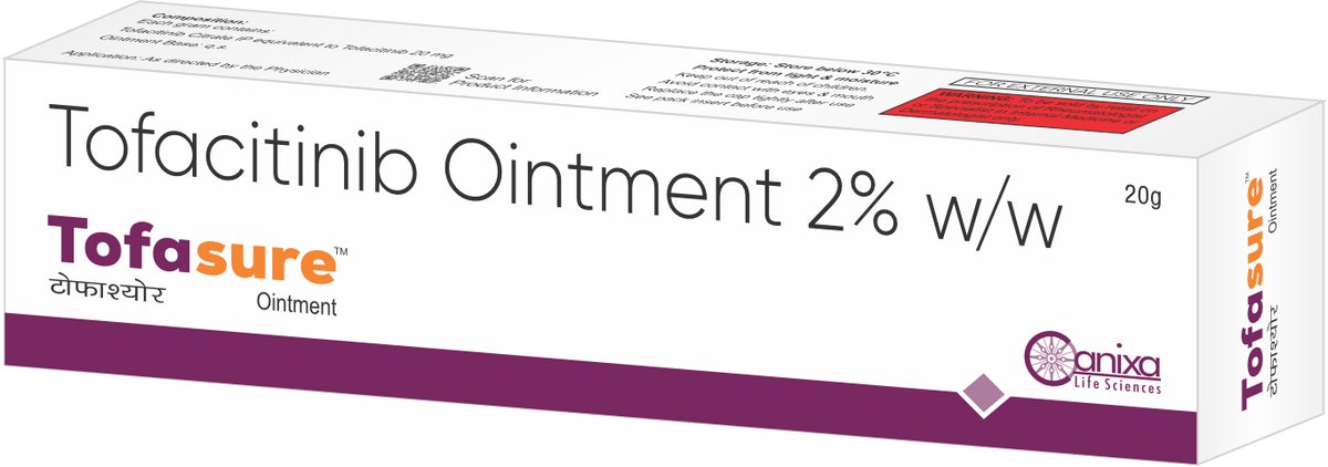 Tofasure 2% Ointment is used to treat atopic dermatitis and hair loss (androgenetic alopecia). It works by blocking the release of certain chemical messengers that cause redness, swelling, and itching or cause hair shedding in the affected area.