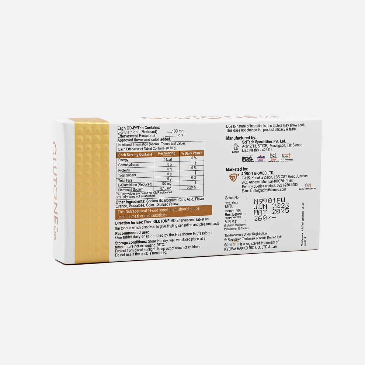 Glutone MD – Glutathione Mouth-Dissolving Tablets| Made with Setria L-Glutathione (Japan) 100mg| Radiant Glow & Even Skin Tone| Pack of 30 Tablets