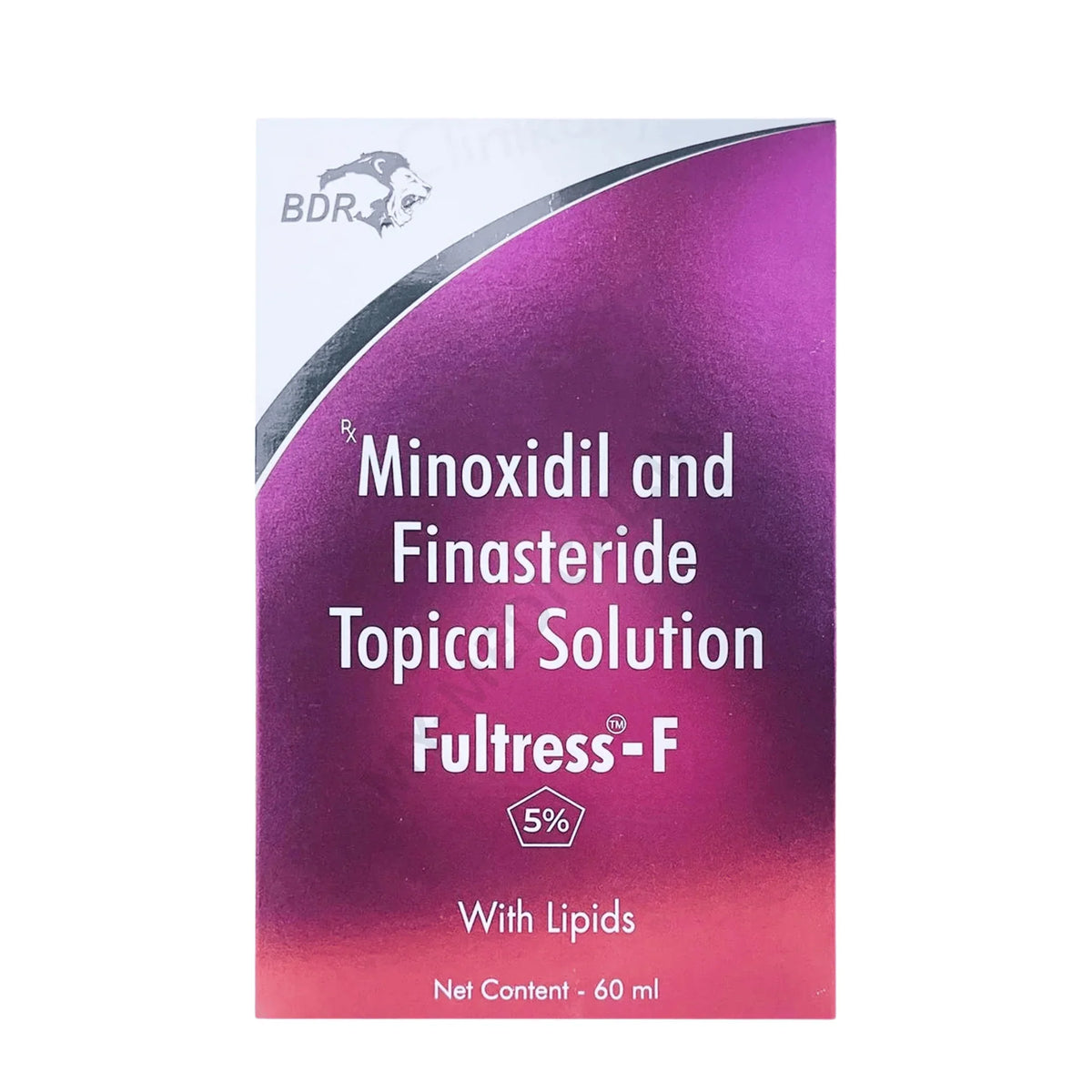 Fultress-F 5% Topical Solution is a specialized formulation designed to address hair loss and promote hair regrowth. Enriched with Minoxidil and Finasteride, it works by improving blood flow to hair follicles, extending the growth phase, and preventing hair thinning caused by hormonal changes. This clinically proven solution revitalizes scalp health, enhances follicle activity, and stimulates thicker, healthier hair growth. Suitable for men with androgenetic alopecia, it should be used under medical supervision for optimal results.