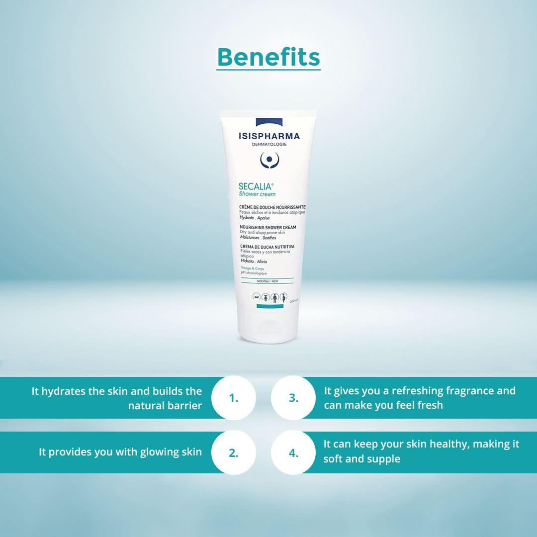Isispharma Secalia Nourishing Shower Cream is enriched with ingredients that moisturize your skin, making it soft and supple. It gives you a refreshing fragrance and can make you feel fresh. It keeps your skin healthy, moisturized and soft to the touch. It lightly exfoliates your skin and gets rid of dirt. It contains inca inchi oil, and shea butter which actively moisturizes and hydrates your skin, giving it a smooth and supple look. It may also address problems related to drying and moisture loss. It works for all skin types. It is skin-friendly and does not contain any harmful chemicals.