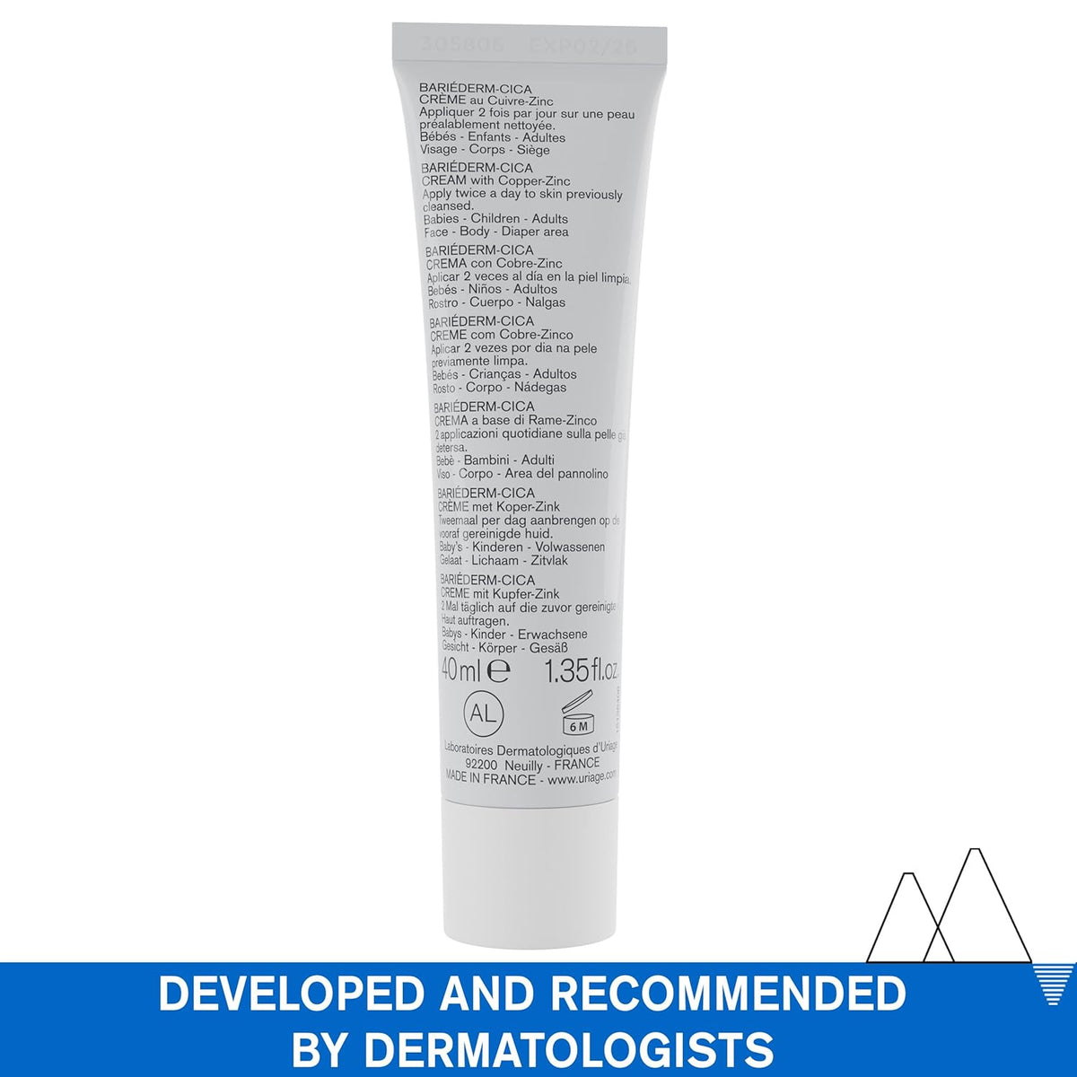 Uriage Bariederm-Cica Multi-Purpose Cream (Minors Cuts, Burns) Dermatological Healing Cream For Damaged Skin With COPPER-ZINC & D-PANTHENOL I Repairs Scars | For The Whole Family I Fragrance-Free|40ml