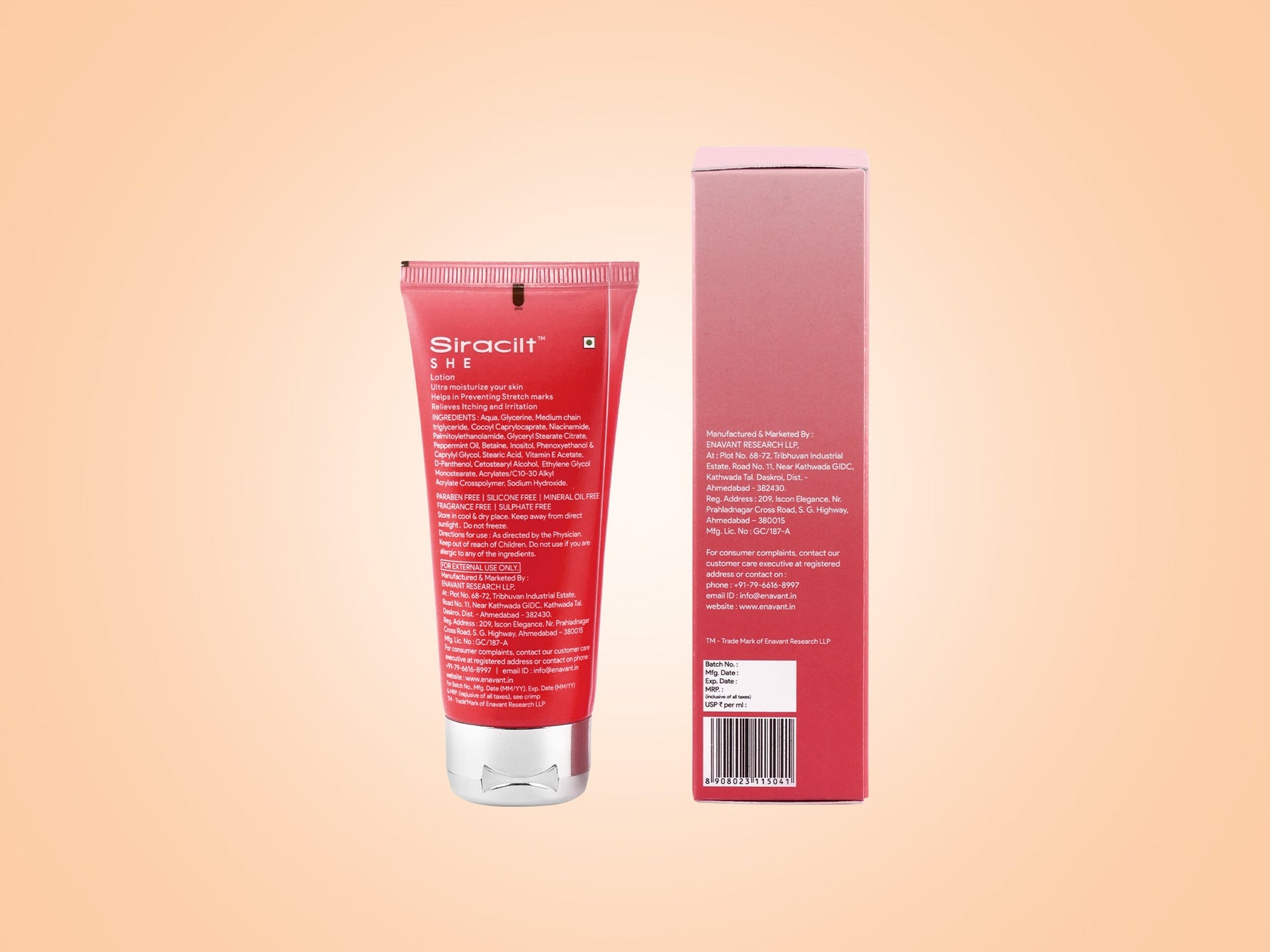 Siracilt She Lotion has been specially formulated to ultra moisturise your skin, ease stretch marks and help in relieving itching and irritation. Its primary components include palmitoylethanolamide (PEA), niacinamide and peppermint oil. This groundbreaking solution provides hydration to the skin and its anti-inflammatory properties may help control skin flare-ups and itching. The key components of the lotion create a protective barrier which can help preserve skin moisture and lessen itching.