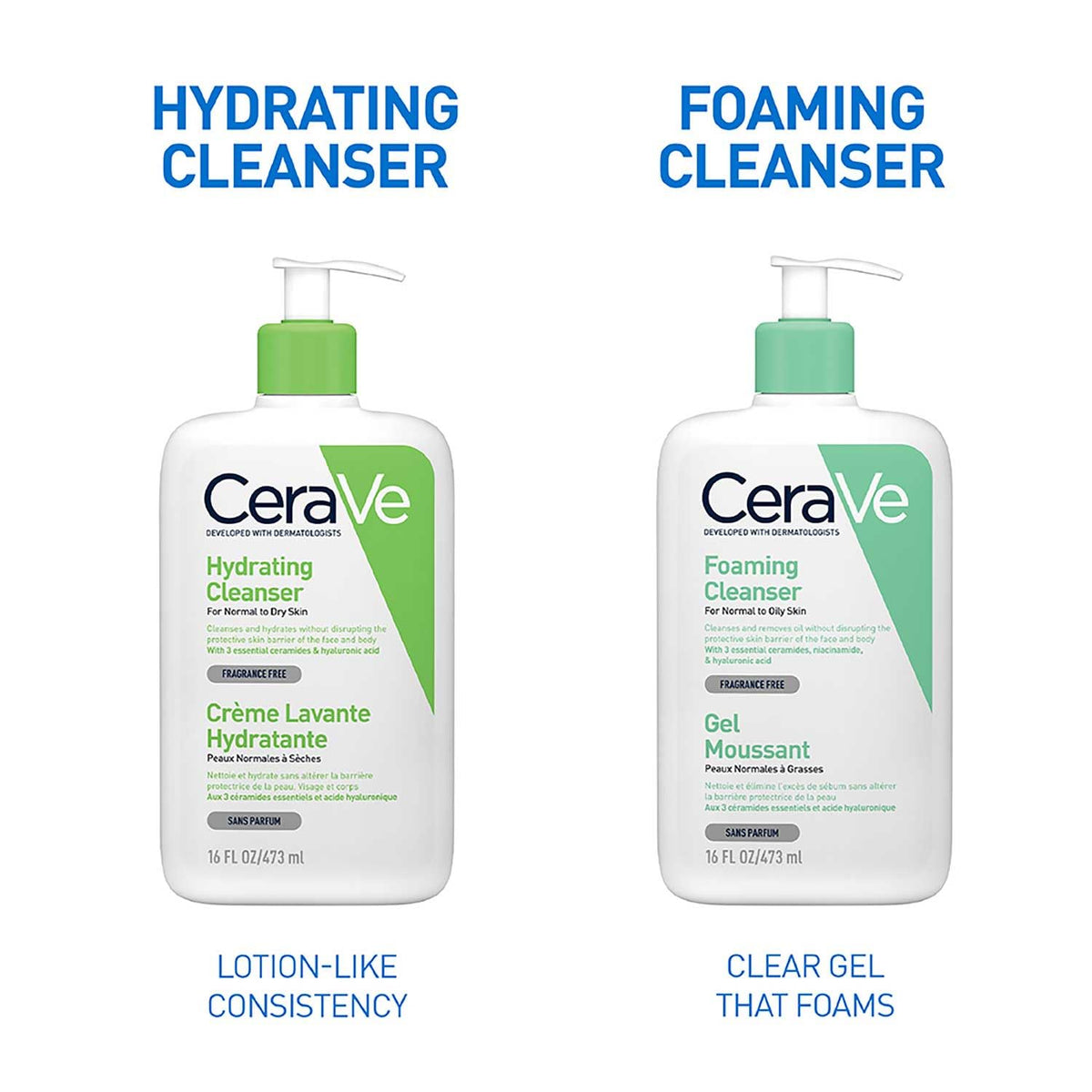 A cleanser can remove dirt, makeup and other debris from the skin. But a hydrating cleanser like the CeraVe Hydrating Facial Cleanser can do all that without disrupting the skin’s natural protective barrier or stripping the skin of its natural moisture. Created with dermatologists, the CeraVe Hydrating Cleanser is a gentle facewash powered with ingredients like ceramides and hyaluronic acid that work to restore the skin’s natural barrier and lock in moisture. The CeraVe hydrating facewash is designed to cleanse and refresh the skin without over-stripping it or leaving it feeling tight and dry. Featuring three essential ceramides to restore the skin's barrier, hyaluronic acid to hydrate the skin, and MVE Delivery Technology to supply the skin with a steady stream of nourishment, this non-comedogenic hydrating facial cleanser is an effective yet non-irritating way to start any skincare regimen. Best for normal to dry skin.