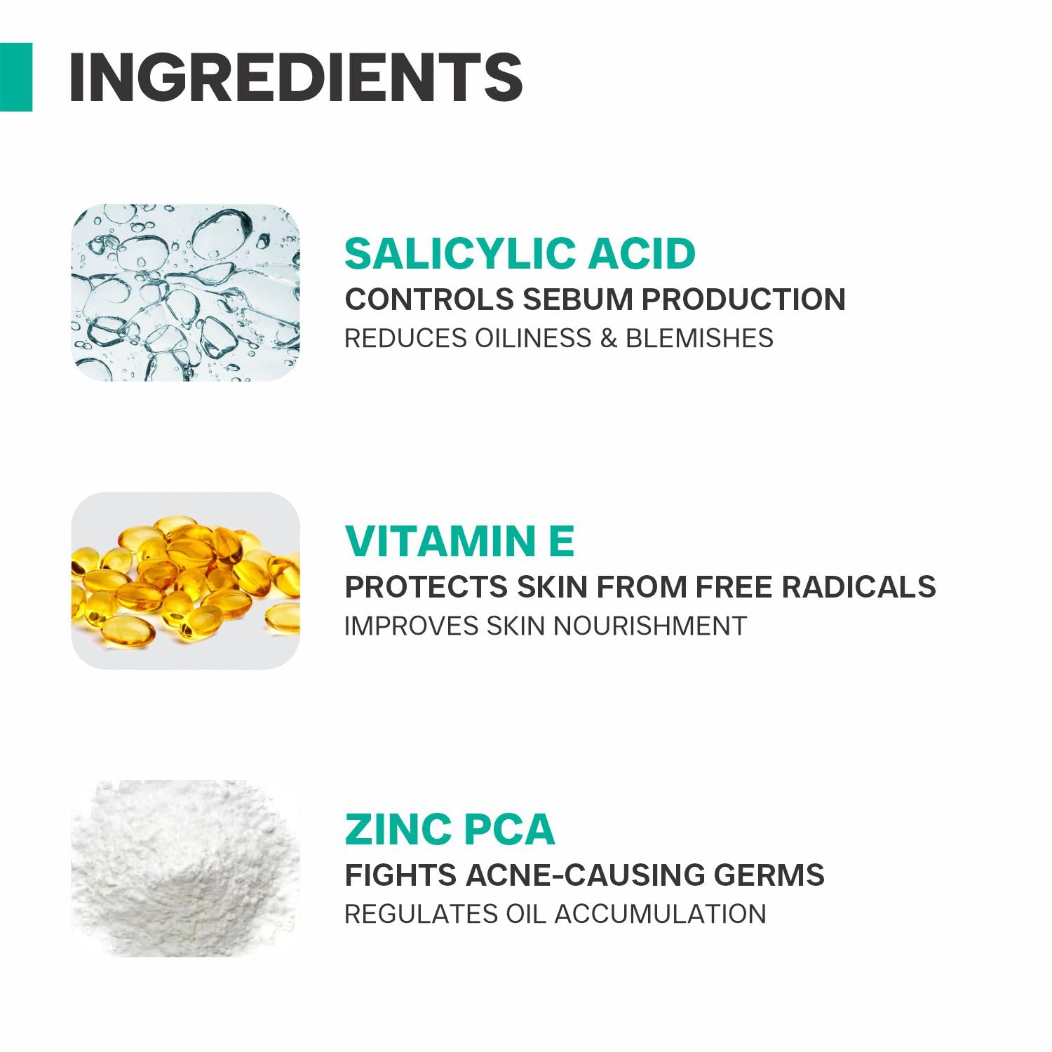 Salicylic Acid 2% Face Wash is specially formulated for acne-prone & oily skin that gently exfoliates the dead skin cells while soothing & calming the irritated skin without over sensitizing it and improves the barrier function of the skin to combat the acne for protected and nourished skin.
