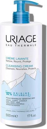 Uriage Creme Lavante Cleansing Cream is a gentle, soap-free cleansing cream specially formulated for sensitive skin, designed to cleanse, nourish, and protect while respecting the skin’s natural balance. Strictly based on the referenced images, Uriage Creme Lavante Cleansing Cream is suitable for use on the face, body, and hair, offering a creamy, non-irritating cleansing experience that leaves the skin soft, comfortable, and hydrated, making it ideal for the whole family. The formula highlighted in the images contains more than fifteen ingredients, from which the main key ingredients with priority to extracts and core actives include Uriage Thermal Water, Glycerin, Illipe Extract, Shorea Stenoptera Seed Butter, Decyl Glucoside, Cocamidopropyl Betaine, Magnesium Laureth Sulfate, PEG-120 Methyl Glucose Dioleate, Citric Acid, Sodium Chloride, Styrene/Acrylates Copolymer, Parfum (Fragrance), and DMDM Hydantoin, working together to gently cleanse, moisturize, and protect sensitive skin without causing dryness or irritation. The images also emphasize that Uriage Creme Lavante Cleansing Cream is hypoallergenic, soap-free, and ophthalmologically tested, making it suitable even for delicate skin areas and ensuring a high-tolerance cleansing solution for regular hygiene needs.