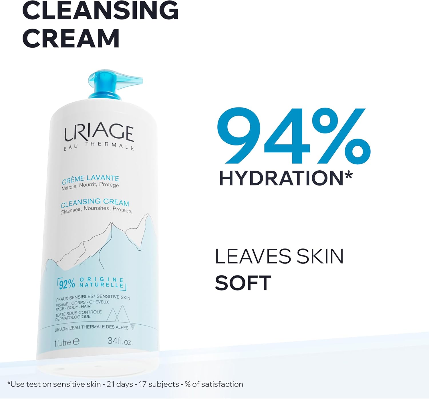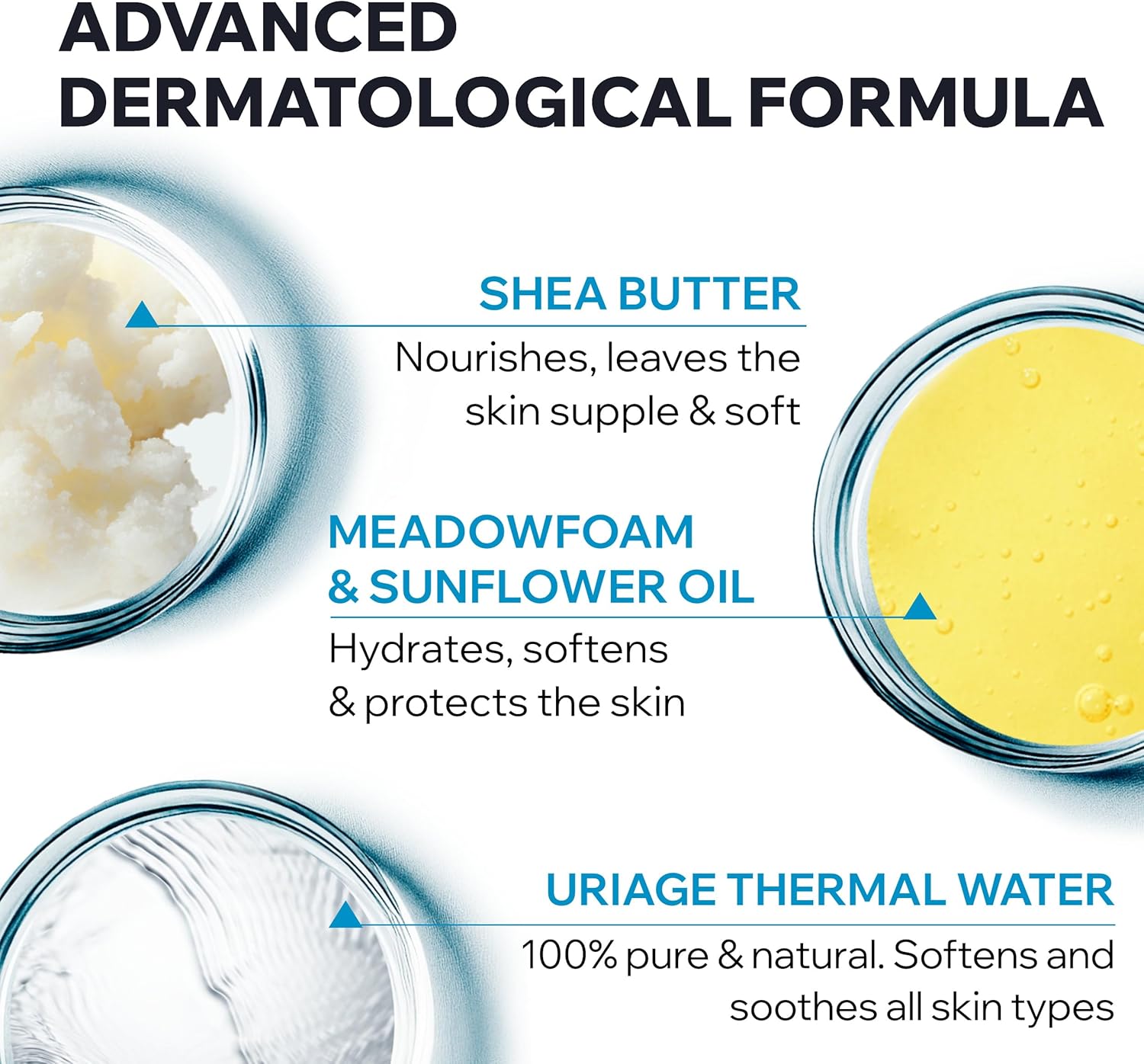 Uriage Cleansing Cream - Moisturizing Body Cleanser with Shea Butter - 2-in-1 Cleansing & Nourishing - Face, Body & Hair - 92% Natural Origin, Paraben & Soap-Free - Physiological pH