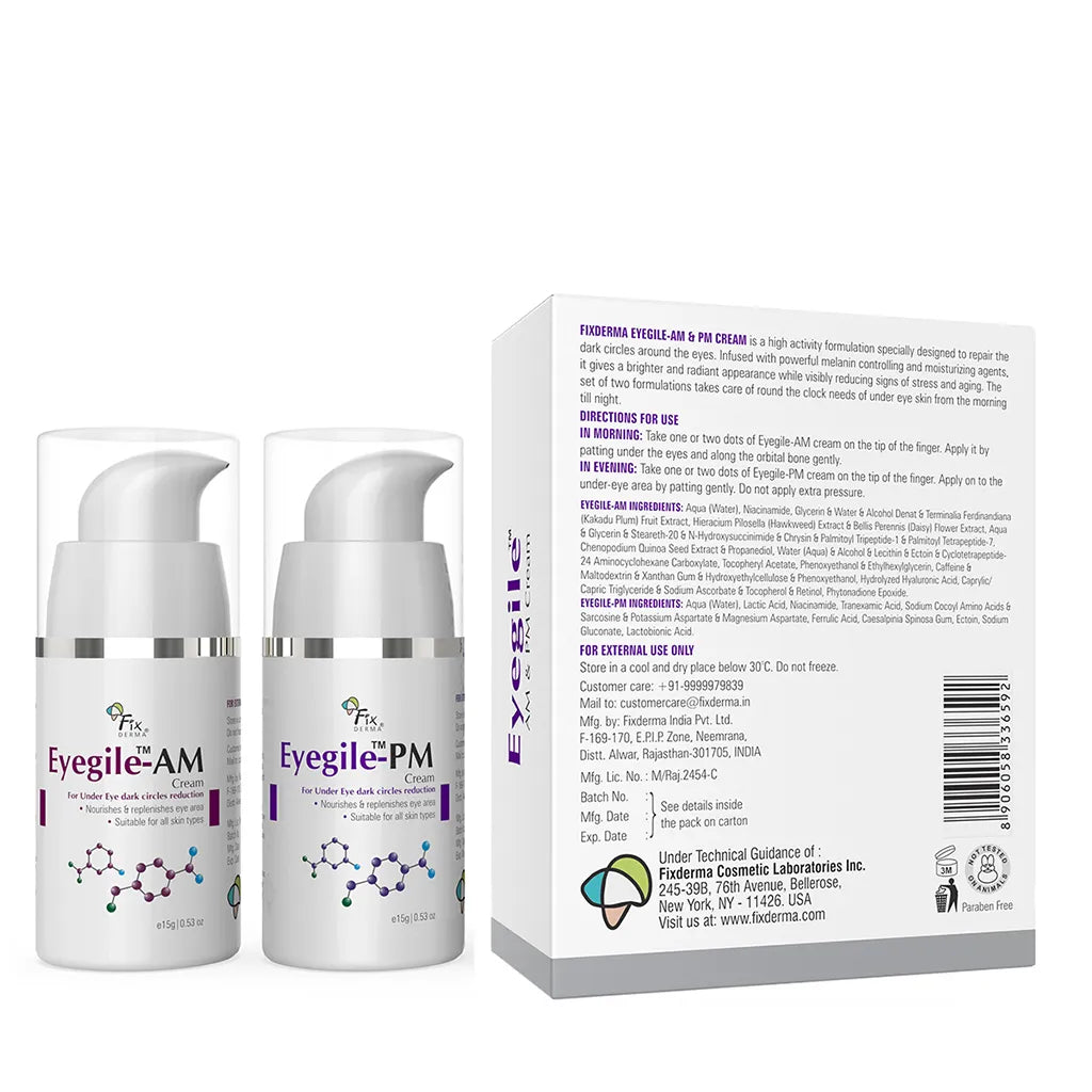 Fixderma has launched Eyegile-AM & PM cream, a perfect key with the set of 2 specific and high quality formulations to efficiently erase the tone of purple colouring of dark circles and takes care of round the clock needs of under eye skin from the morning till night.