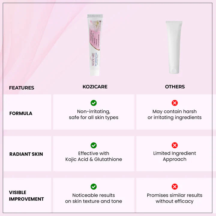 Kozicare Kojic Acid Cream, Glutathione Cream with Niacinamide | Face Cream For Glowing Skin | Dark Spot & Tan Removal Cream | Face Cream for Men & Women | Lightweight & Non Greasy - 15 Gm (Pack of 3)