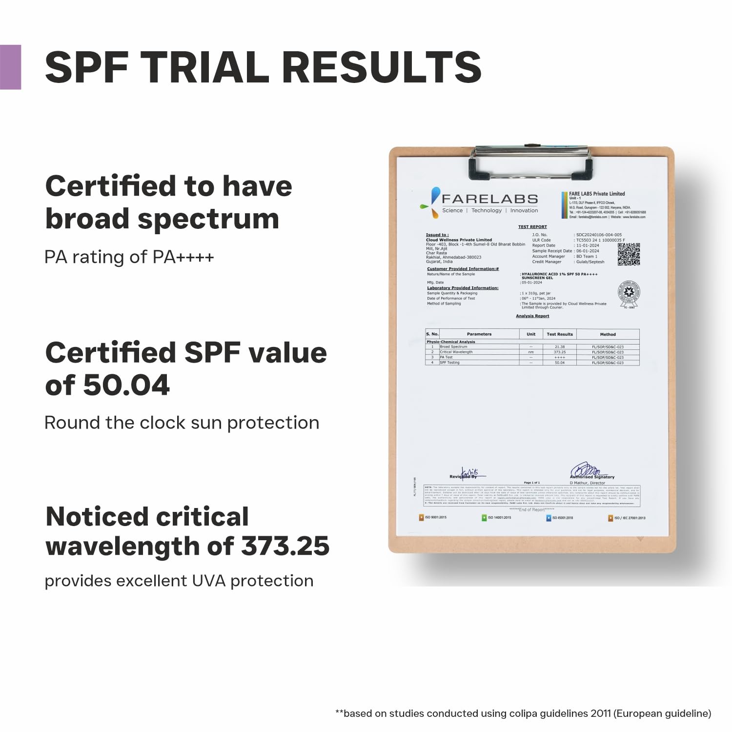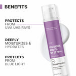 Dermatouch Hyaluronic Acid 1% Sunscreen provides broad spectrum protection and protects against blue light with SPF 50 PA++++.