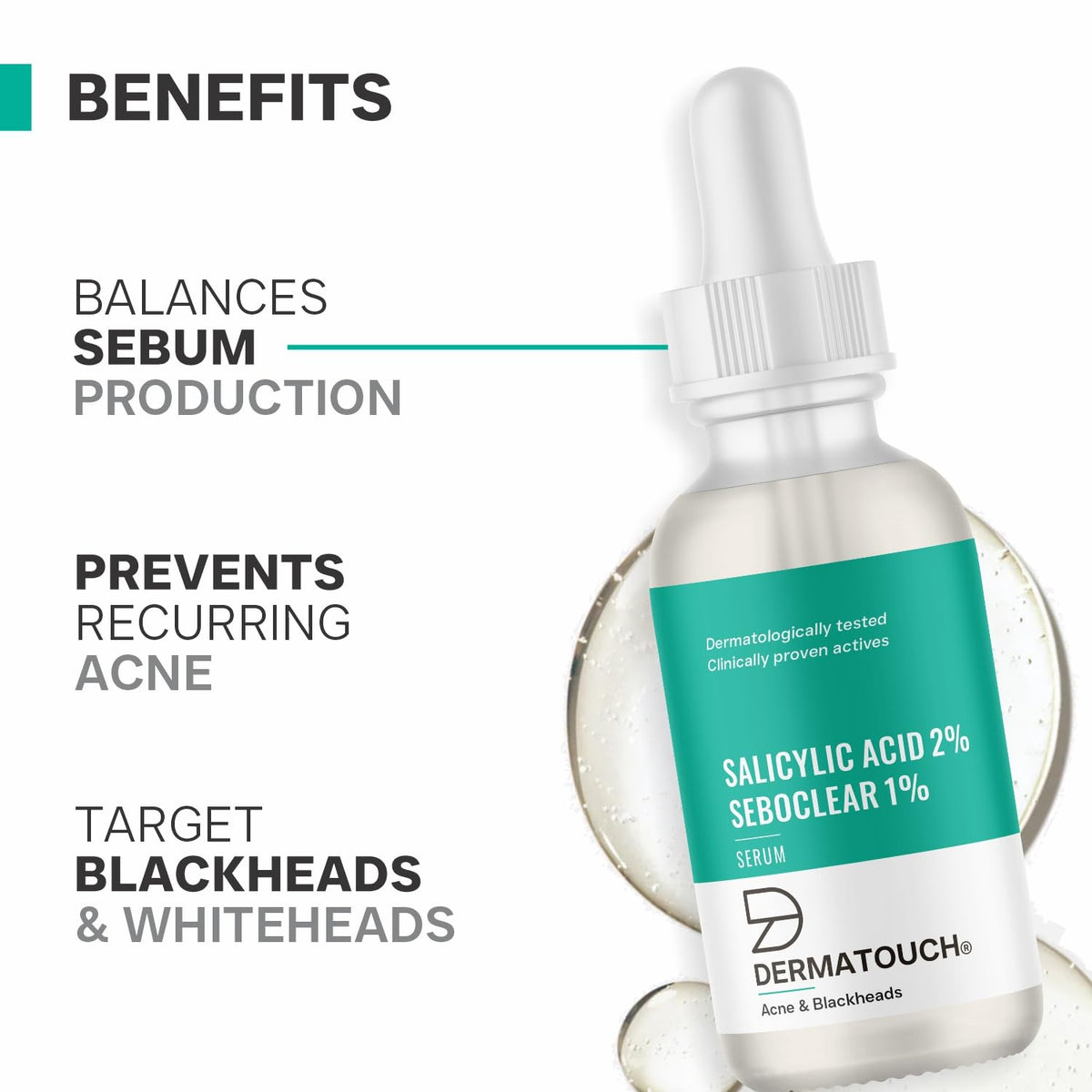 DERMATOUCH Salicylic Acid 2% Seboclear w/w 1% Face Serum | For Acne & Blackheads | Specially for Acne-prone & Oily Skin