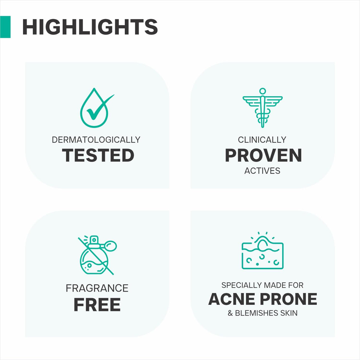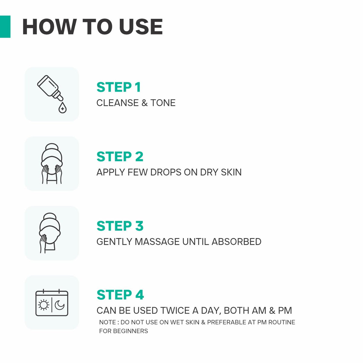 It promotes and boosts the overall skin texture by reducing acne, blackheads, whiteheads, excess oil, minimizing pores and inhibiting melanin synthesis for a glowing and radiant skin. This serum also helps to comfort the acne-prone skin from irritation and inflammation.