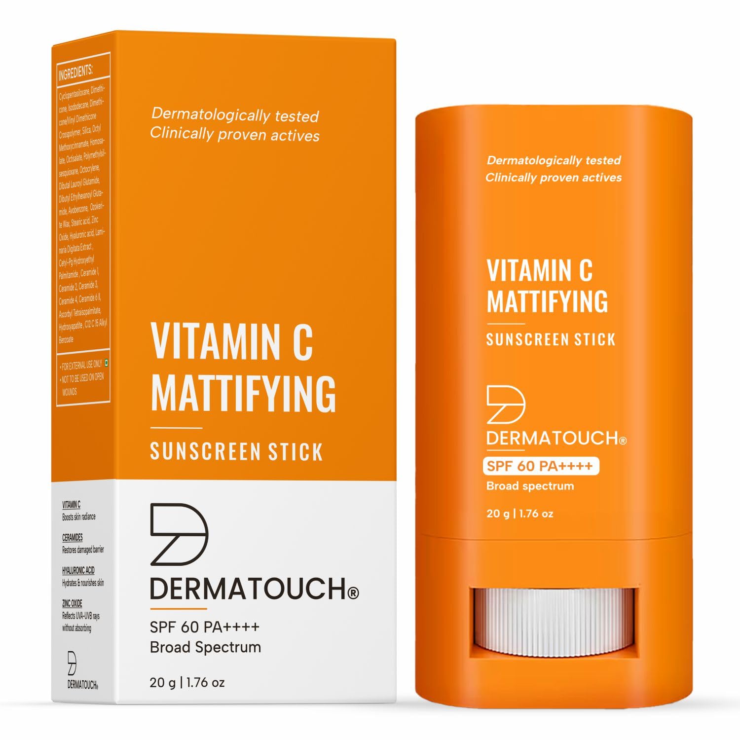 DERMATOUCH Vitamin C Mattifying Sunscreen Stick | SPF 60 PA++++ | For Brightening | Lightweight, No White Cast Sunscreen For All Skin Type | 20g