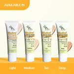Shadow SPF 50+ Tinted Sunscreen features 1% Hyaluronic Acid, SPF 50+, and PA+++ that provide sheer coverage and protect against harmful UVA & UVB rays. Powered by potent ingredients, which blends easily and conceals blemishes for an even-toned skin. This lightweight, foundation-like sunscreen is available in 4 flexible shades - Light, Medium, Tan, and Deep, making it perfect for all skin types and tones for a smooth, matte finish.