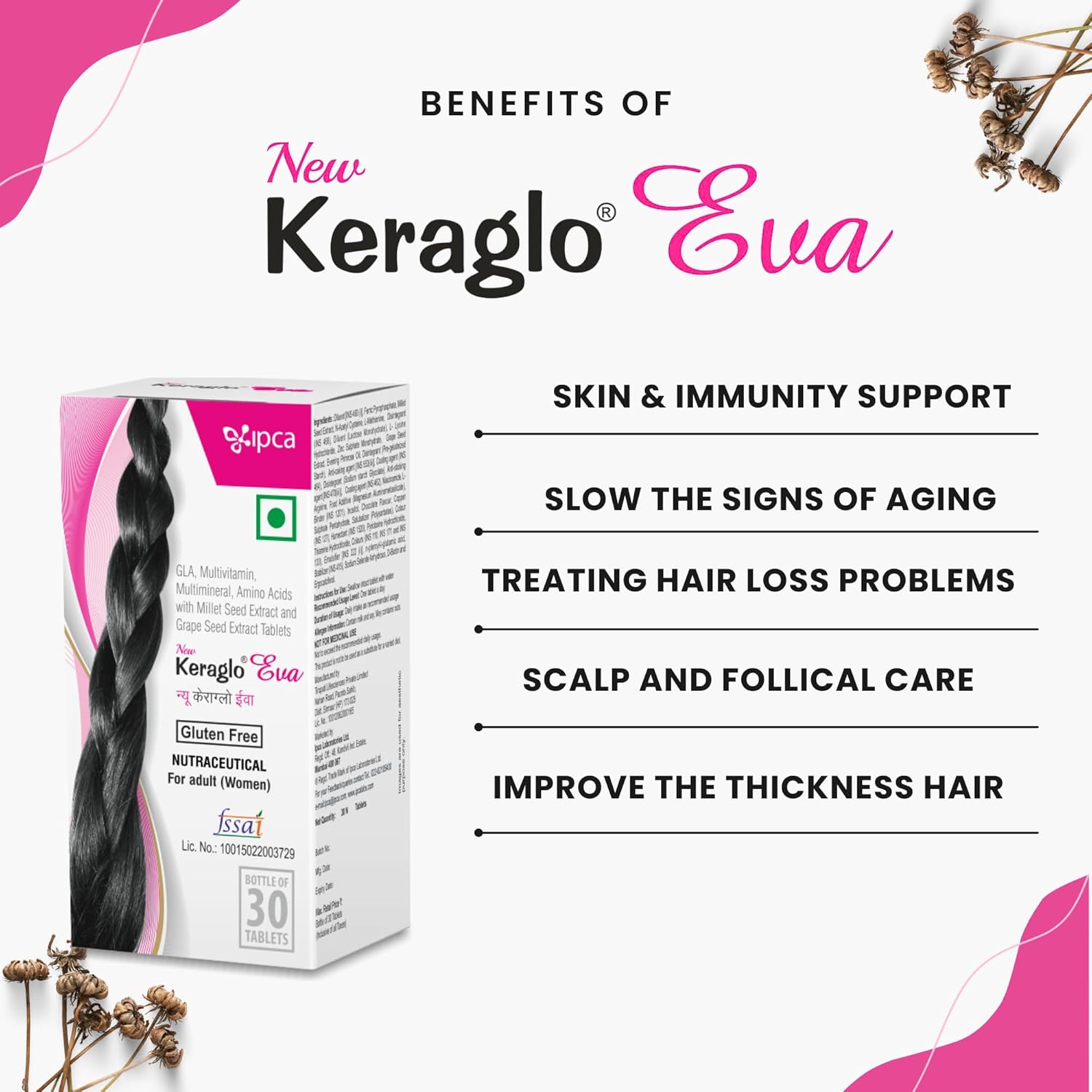 Keraglo Eva Hair Growth Tablets For Women 30 Tabs – Revolutionary Gender Based Formulae | Nourishes Scalp, Supports Follicles & Strengthens Strands – Hair Supplements
