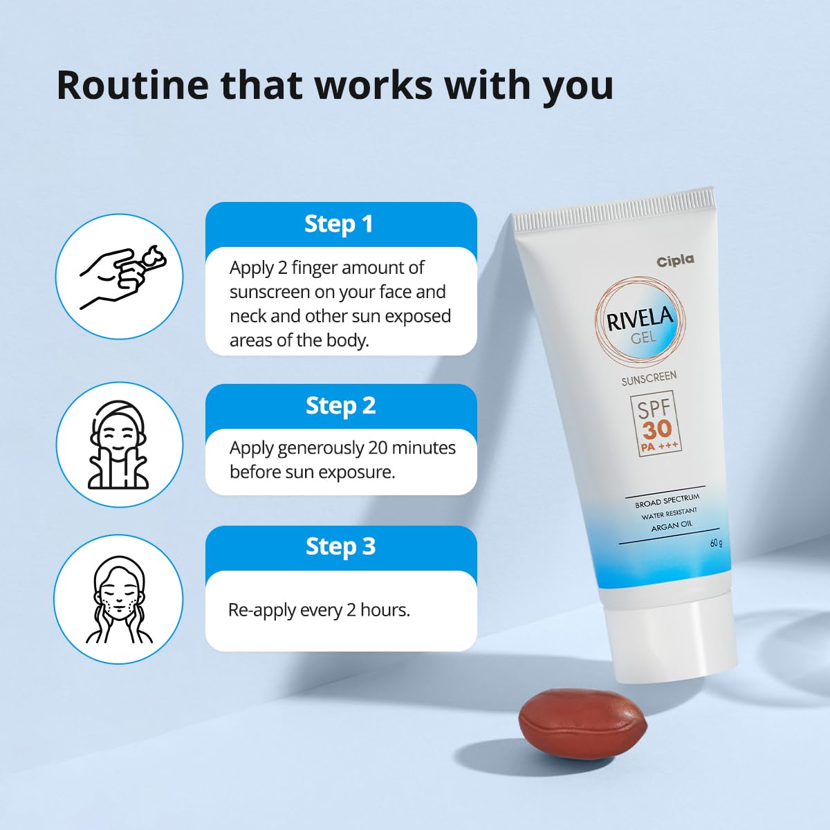 Rivela Gel SPF30+ Sunscreen Gel | Non-Sticky Finish | For Normal To Oily Skin | 60g